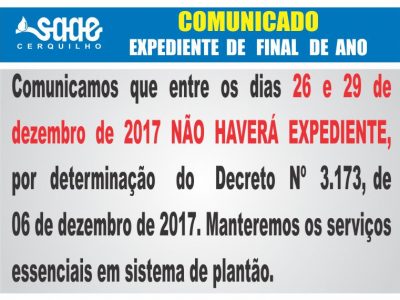 O SAAEC vem, por meio deste comunicado, informar a população dos bairros abaixo descritos sobre a interrupção no fornecimento de água que ocorrerá no dia 25/01/ Continue lendo
